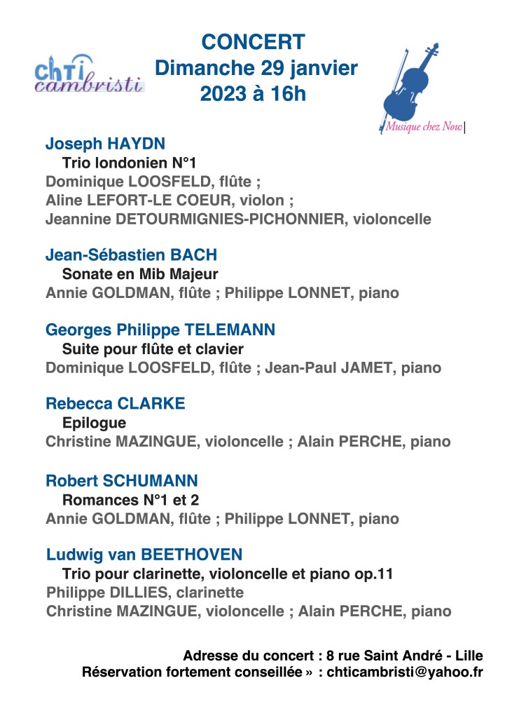 Il reste encore quelques places pour ce concert demain après-midi. N’hésitez pas à réserver par mail : chticambristi@yahoo.fr